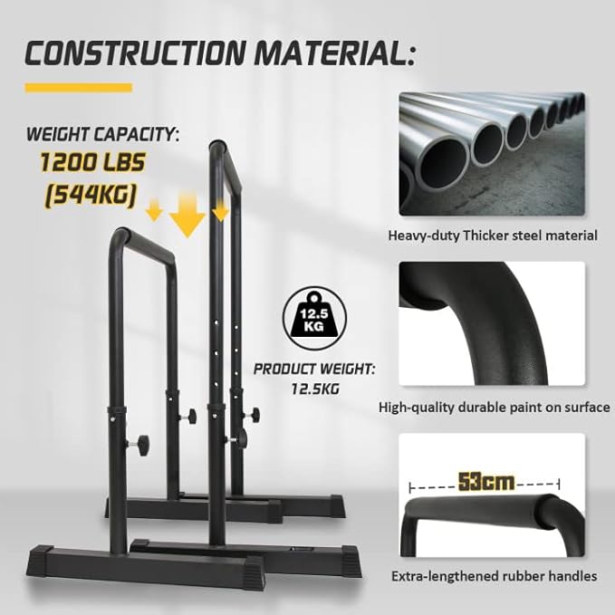 - 1200LBS Loading Capacity: POWER GUIDANCE dip bar overall made of heavy-duty steel, the bottom of the thickened square tube design, strong and durable, the maximum load capacity up to 1200lbs.